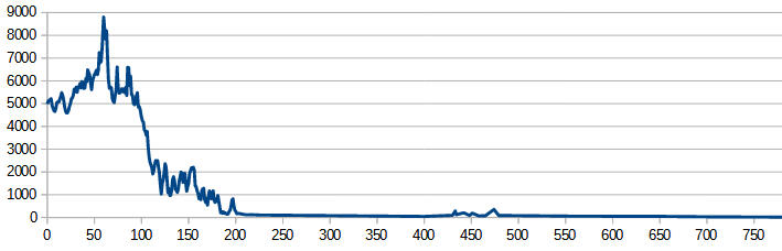 Fig 2 shows what the height profile looks like along the transect in Fig 1. What this picture says is that if you intend to Climb Everest, you should really begin your trek with salt water dripping off your toes from the extreme right of Fig 2. It's only a partial climb if you start from Kathmandu at an elevation of 1400m, or Lukla 2860m up. As for getting dropped off at Everest base camp and summitting from there, you're only scaling the peak that juts up from the Tibetan plateau in that case.But it’s also pretty clear from Fig 2 that there’s very little change in elevation over most of the distance from sea to summit. So to make things easier, let’s just consider the base of the Everest mass to be where the terrain begins to rise significantly, which in Fig 2 looks to be at around the 200 km mark. Now let’s compare this business end of the height profile with 'the tallest mountain on the Moon’.