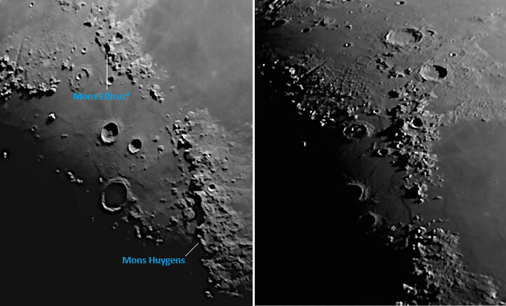Fig 9 - The Apennine and Caucasus Mountains - telescopic images (8" untracked Dobsonian)